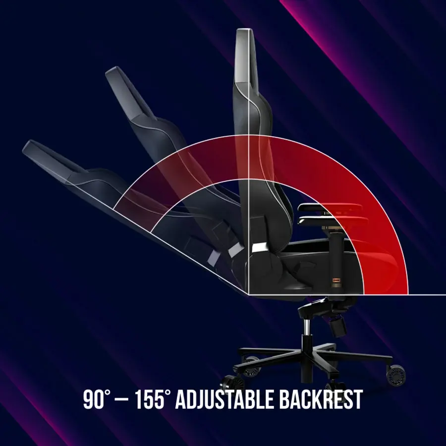 High-Quality Memory Foam | Durable Eco-Leather | Fully Adjustable 4D Armrests | Reclines from 90° to 155° | Sturdy Metal Frame with Smooth PU Casters